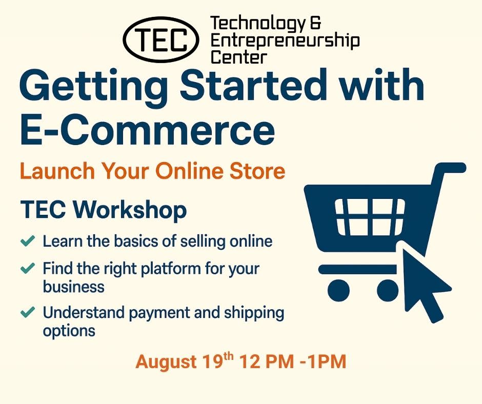 EC Workshop hosted by the Technology & Entrepreneurship Center (TEC)! This dynamic session will guide you through the essentials of selling online, help you choose the perfect platform for your business, and demystify payment and shipping options.