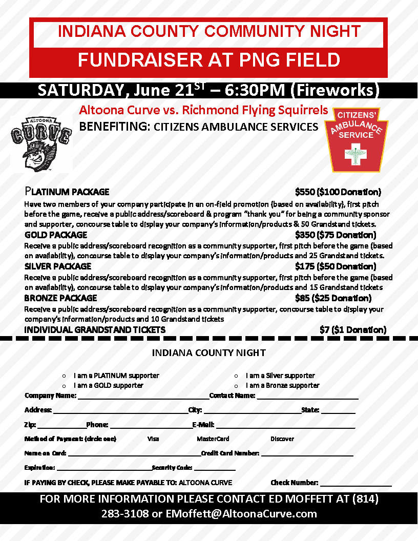 Indiana County Community Night – Altoona Curve vs. Richmond Flying Squirrels